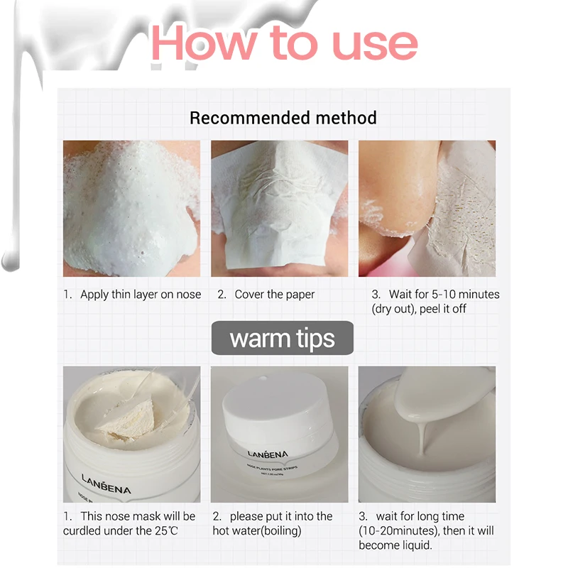 1*30g caixa máscara de nariz + 60pcs cleansões